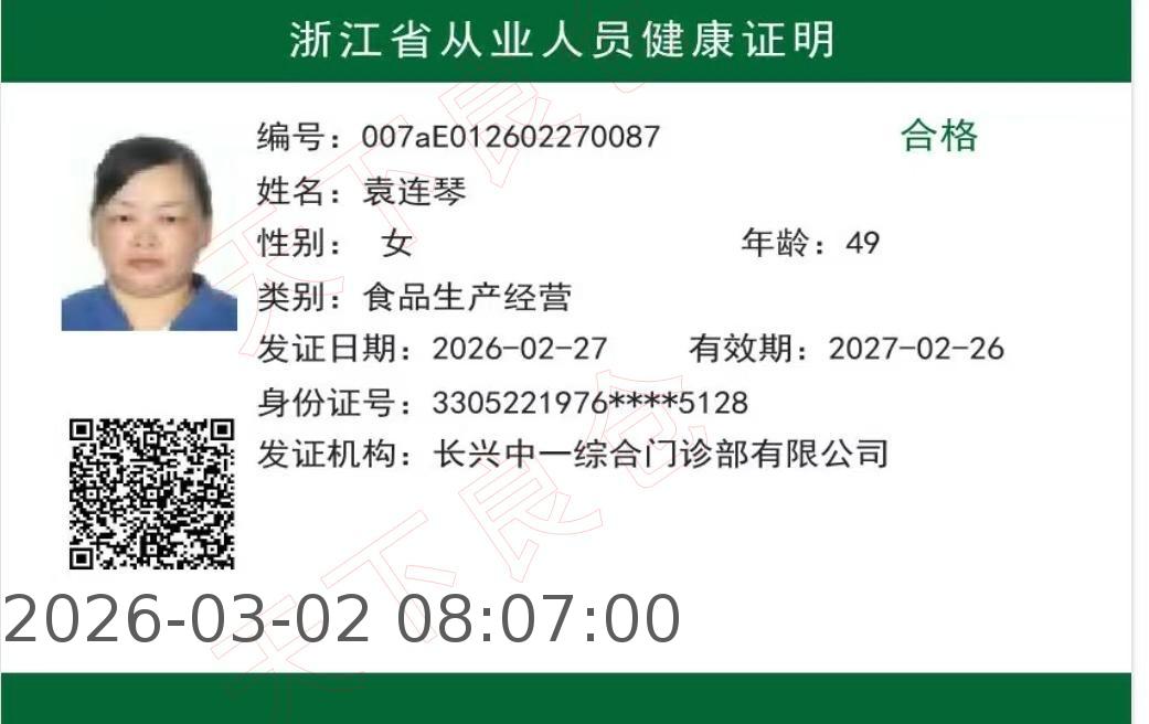 [健康证]实验二小学生--袁莲琴